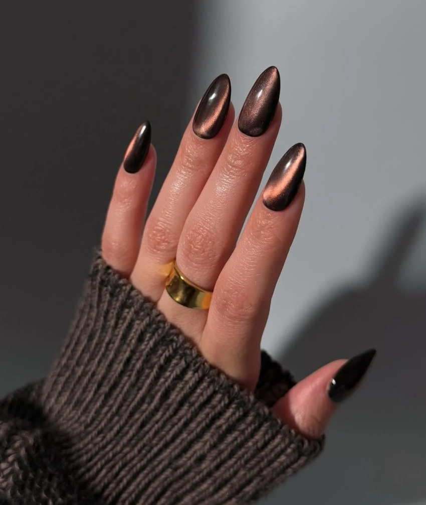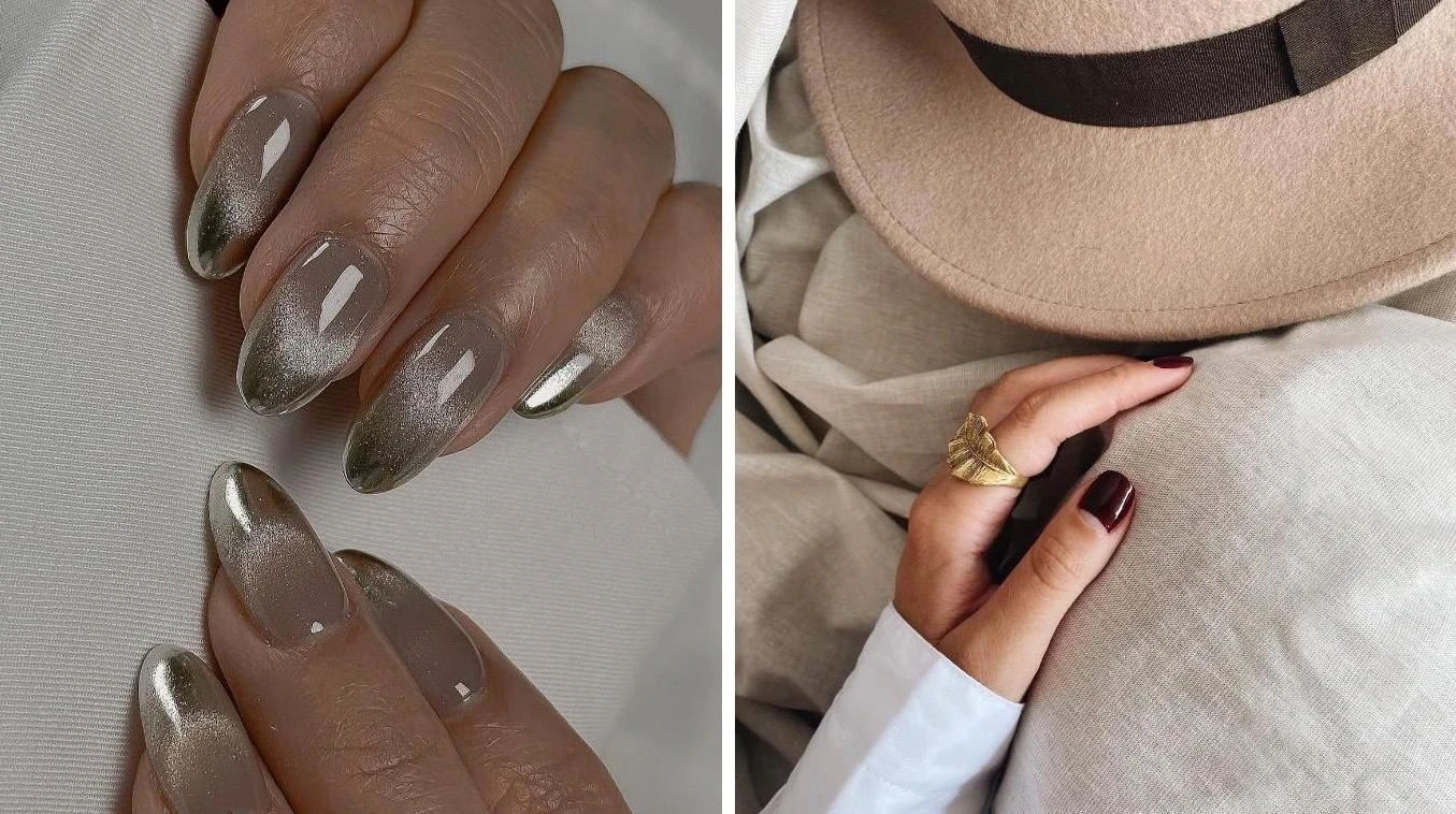 Маникюр «кошачий глаз» особенно красиво раскрывается зимой, когда мягкие переливы напоминают сияние свечей.