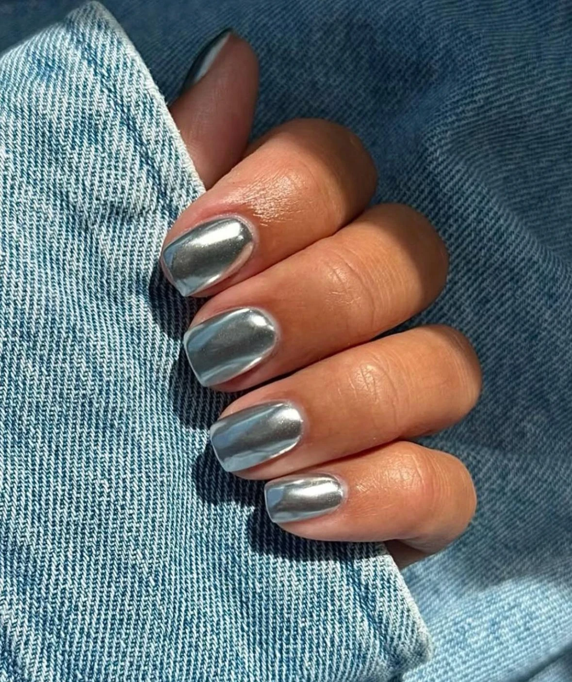Хромированные покрытия будто созданы для декабрьских вечеров. Они отражают свет гирлянд, свечей, праздничных витрин и создают на ногтях эффект настоящей зимней магии.