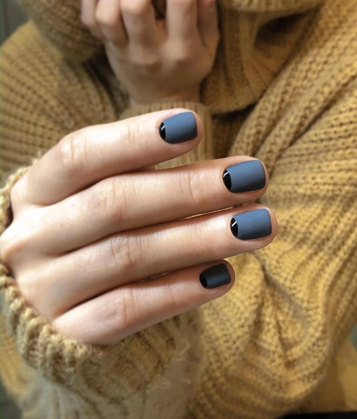Этот маникюр словно повторяет зимнее небо: тихое, глубокое и полное волшебства.