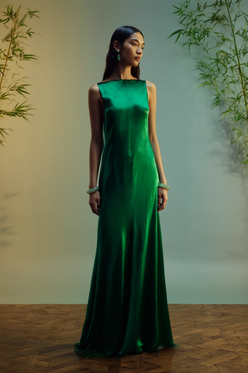 • зелёное вечернее платье,