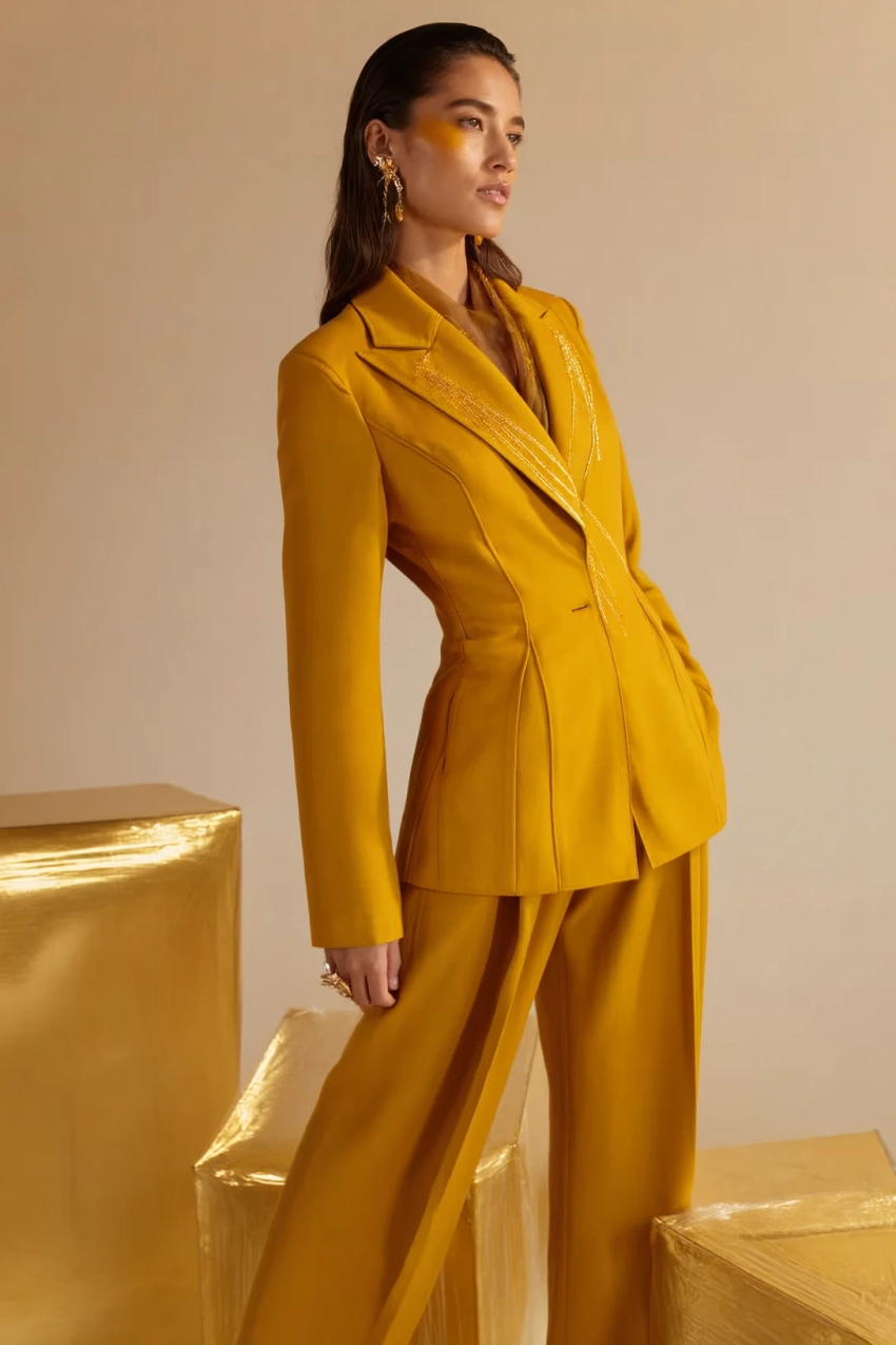 • жёлтую блузку под строгий костюм,