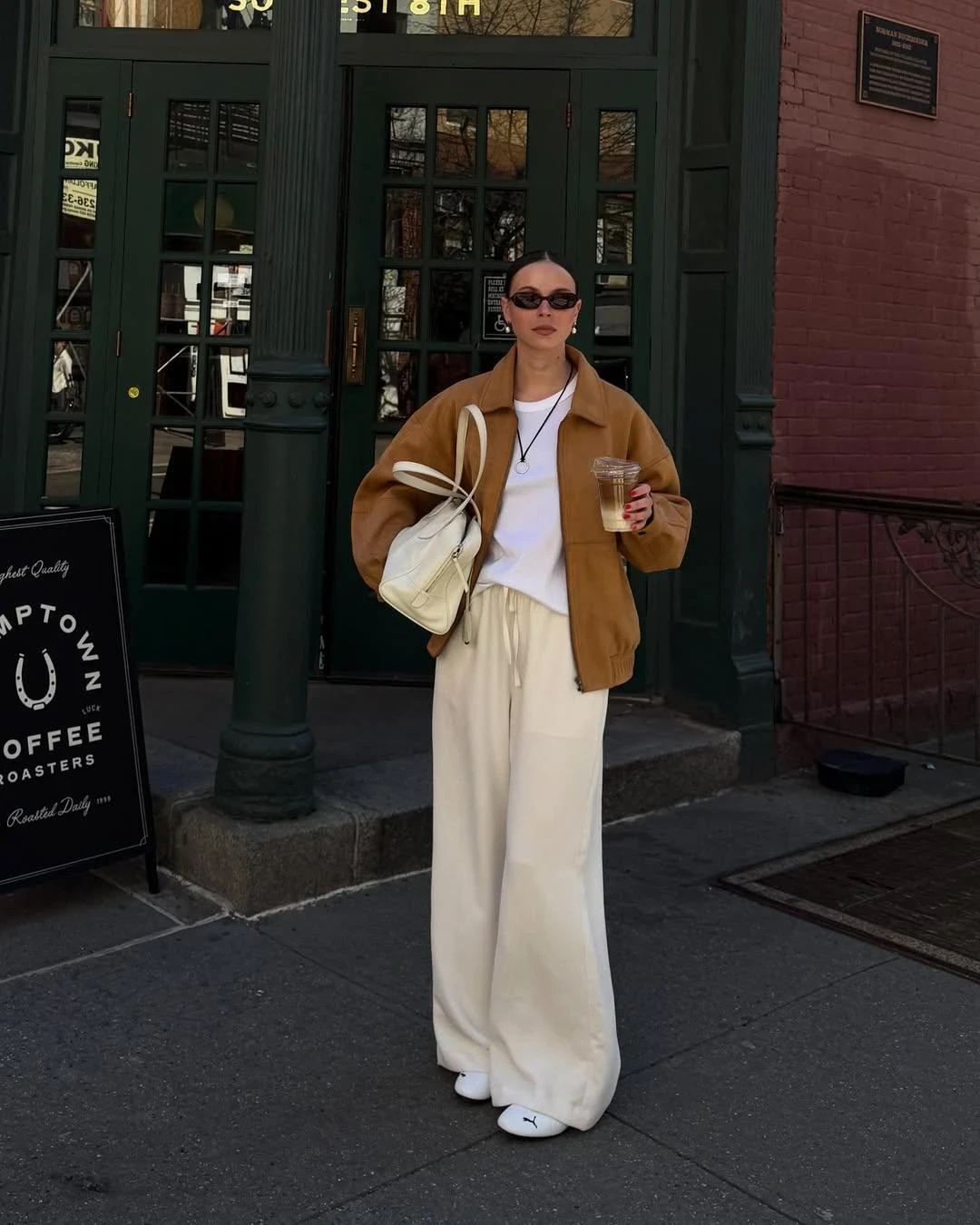 Во-вторых, белые брюки — это простор для бесконечных фэшн-экспериментов: от тотал-луков до контрастных сочетаний.
