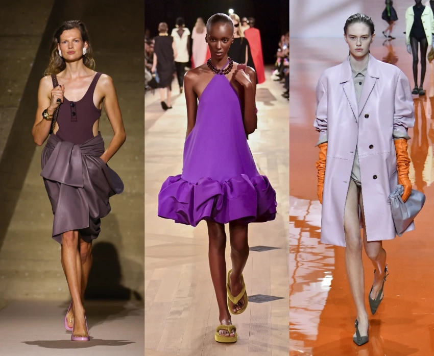 В коллекциях 2026 года фиолетовый раскрывается по-разному: у Chloé он звучит деликатно — в кашемире и струящемся шелке, у Prada становится дерзким и почти неоновым, а у Balenciaga — мрачным и городским, словно отражение ночного мегаполиса. Палитра варьируется от прозрачной лаванды до густого баклажана, позволяя выбрать степень выразительности под настроение, а не под правила.