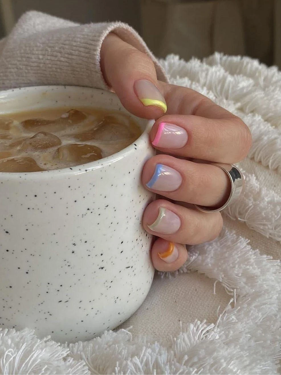 Цветной френч на нюдовой базе