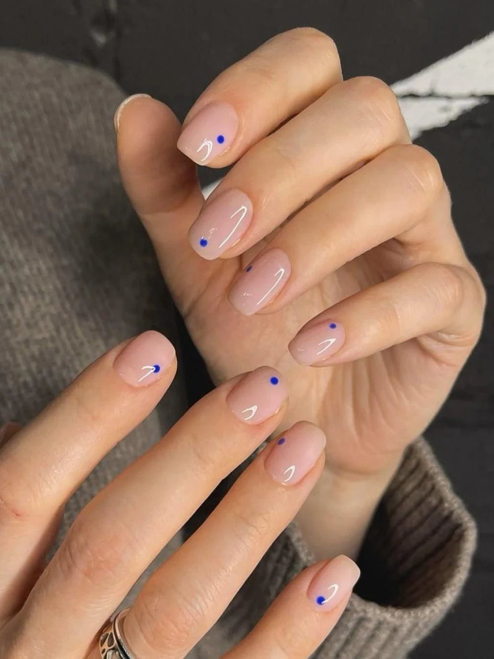 Самый лаконичный вариант — по одной миниатюрной точке у кутикулы на каждом ногте. В качестве базы чаще всего выбирают спокойные оттенки: