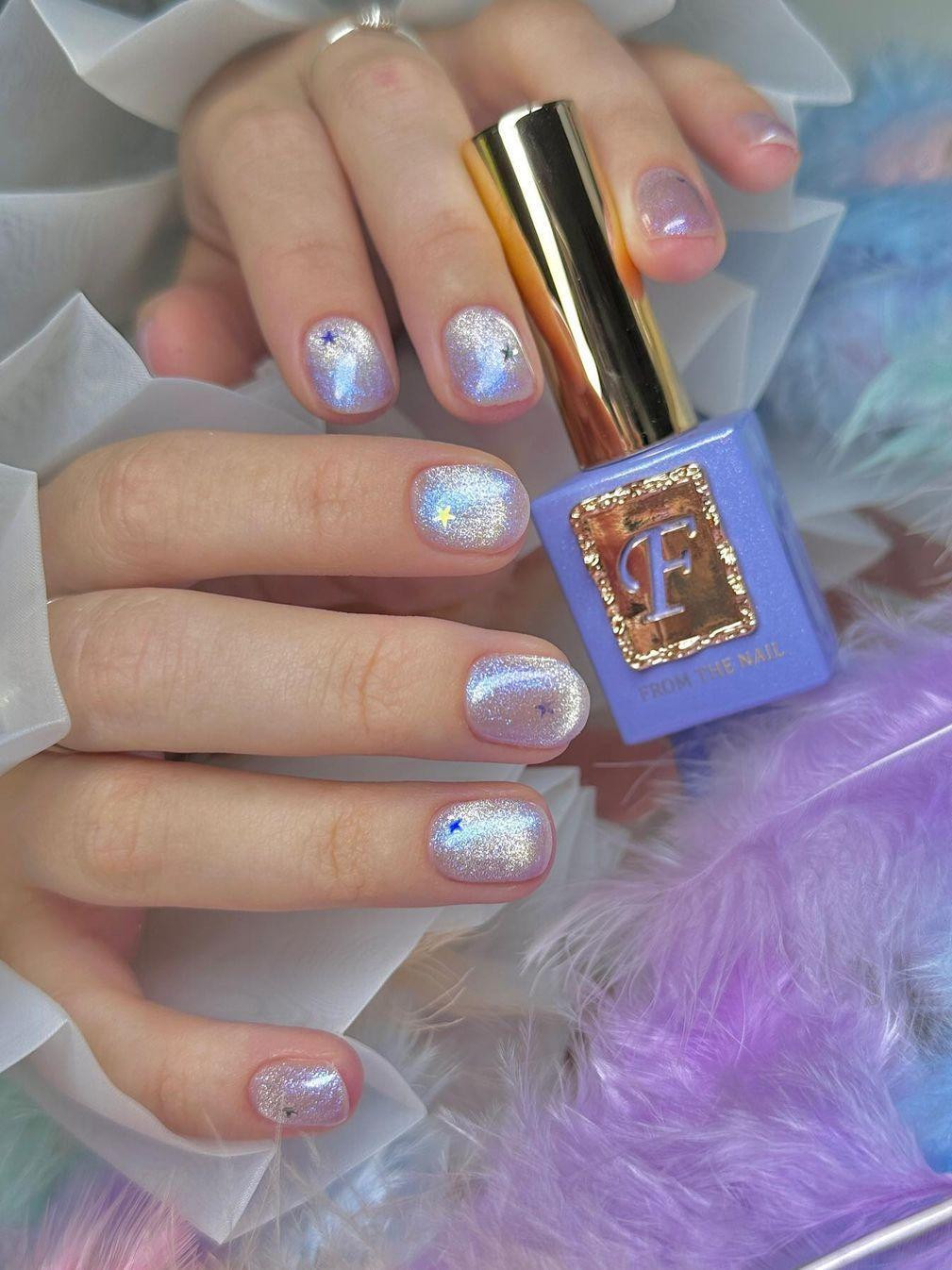 Обычный градиент приобретает новую жизнь с добавлением эффекта «кошачьего глаза». Эффект можно достичь различными способами, создавая плавный переход цвета или играя с оттенками лака.