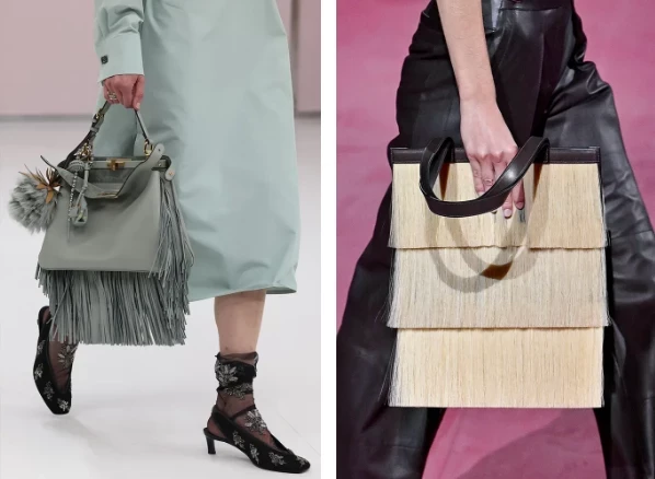 Бахрома снова в моде! Она может быть тонкой, соломенной, кожаной или замшевой — выбор за вами. Такой элемент добавляет динамики и игривости в любой образ, оставаясь актуальным из года в год.