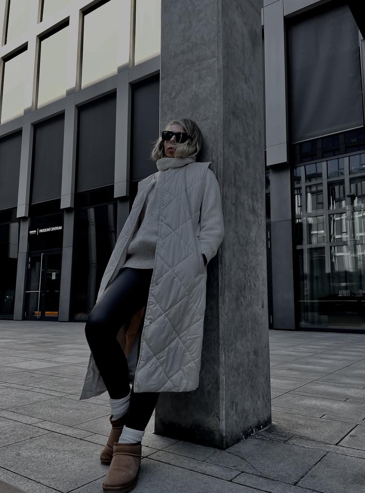Если прошлые зимы ассоциировались с громоздкими пуховиками и «кокон»-пальто, сейчас на первый план выходит стеганая верхняя одежда. Куртки и жилеты создают легкий, воздушный объем, не перегружая фигуру. Это золотая середина: теплее, чем пиджак, но свободнее традиционного пуховика.