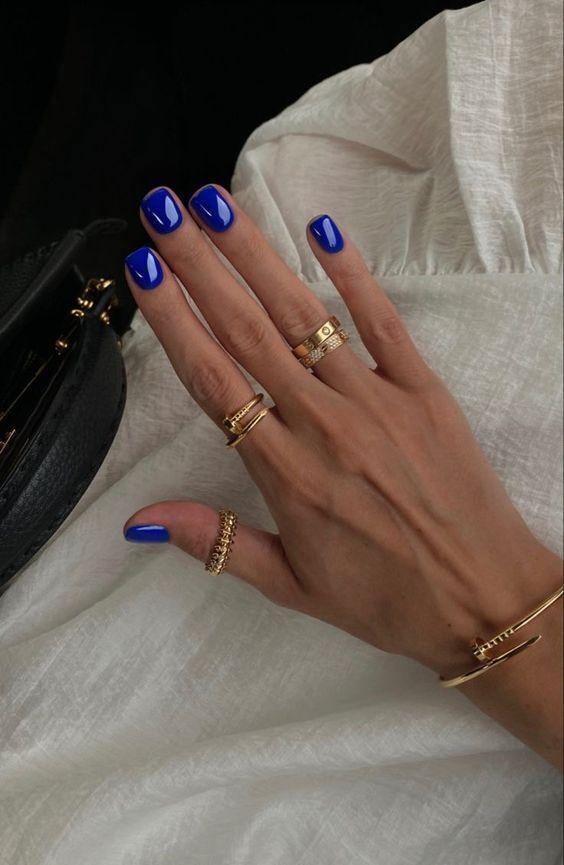 Насыщенный синий — выбор смелых. Прекрасно сочетается с золотом и зеркальными втирками.