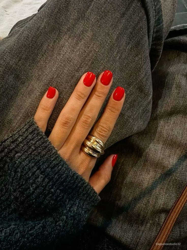 Яркий алый без компромиссов. Не требует сложного дизайна, хорош даже на коротких ногтях.