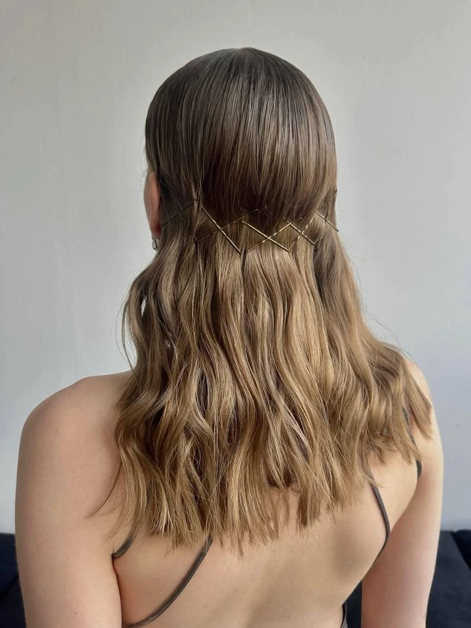 Простой способ убрать волосы с лица и сохранить легкость образа. Сочетается и с прямыми, и с волнистыми волосами.