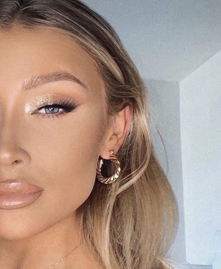 Капля золотого шиммера во внутренние уголки глаз — простая деталь, которая мгновенно делает взгляд сияющим и отдохнувшим.