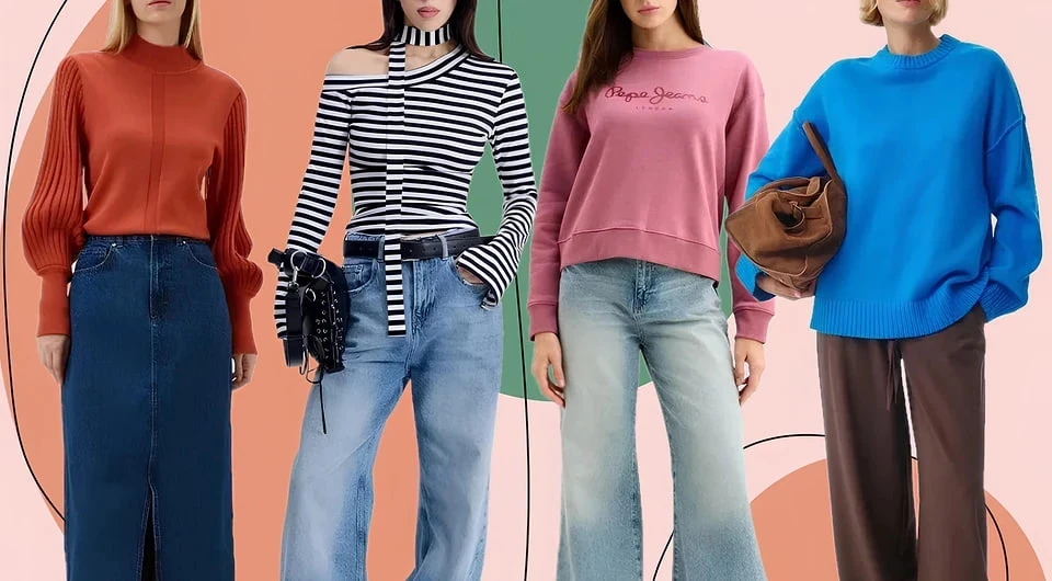Чтобы образ не выглядел плоским, играйте с фактурами: деним, кашемир, шелк, кожа. Контраст материалов сделает лук объемным и стильным.