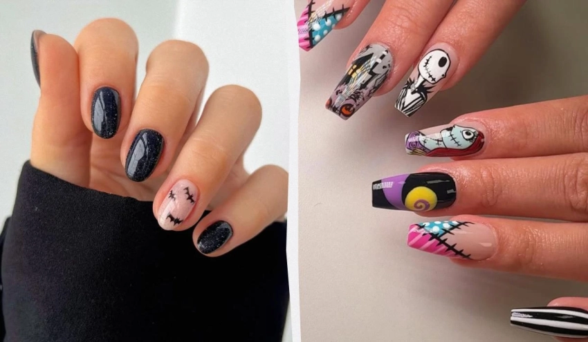 Любители классики оценят дизайн по мотивам мультфильма «Кошмар перед Рождеством». Каждый ноготь — маленькое произведение искусства с героем Джека Скеллингтона, тыквами и ночным небом.