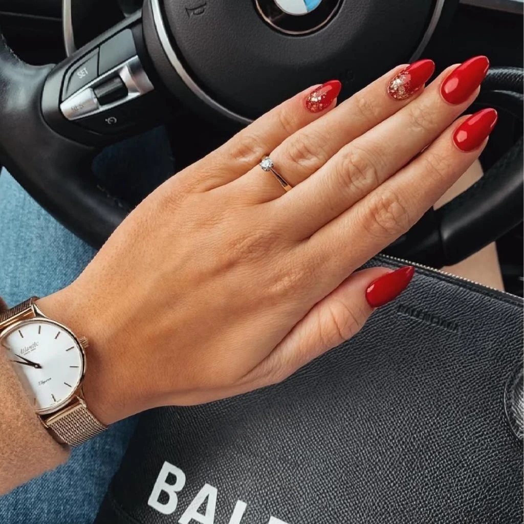 1. Классика в новом прочтении: идеальный красный лак и мерцание фольги
