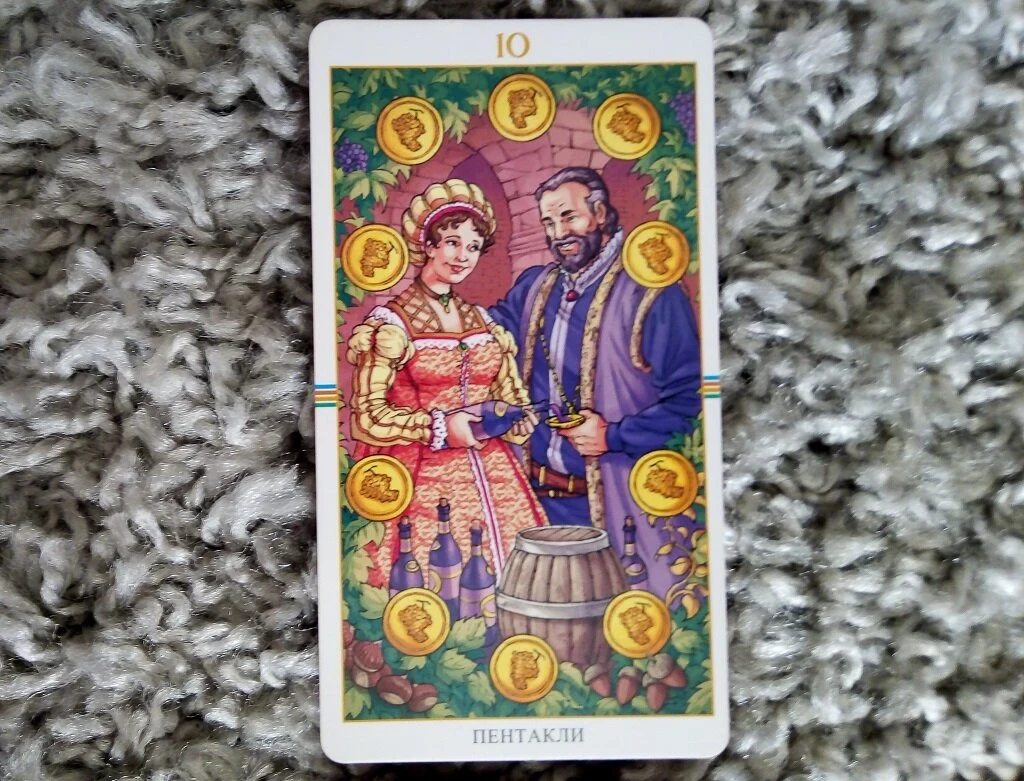 Десятка Пентаклей напоминает: истинный успех — это не только деньги. Это гармония между духовным и материальным, безопасность, семья и традиции.