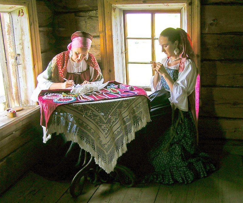 На полях крестьяне совершали обряды и заговоры, чтобы урожай был щедрым и крепким. Из оставшихся после жатвы ячменных стеблей плели венки, переплетая их с льняными и овсяными колосками, — они становились своеобразным оберегом для земли и будущего урожая.