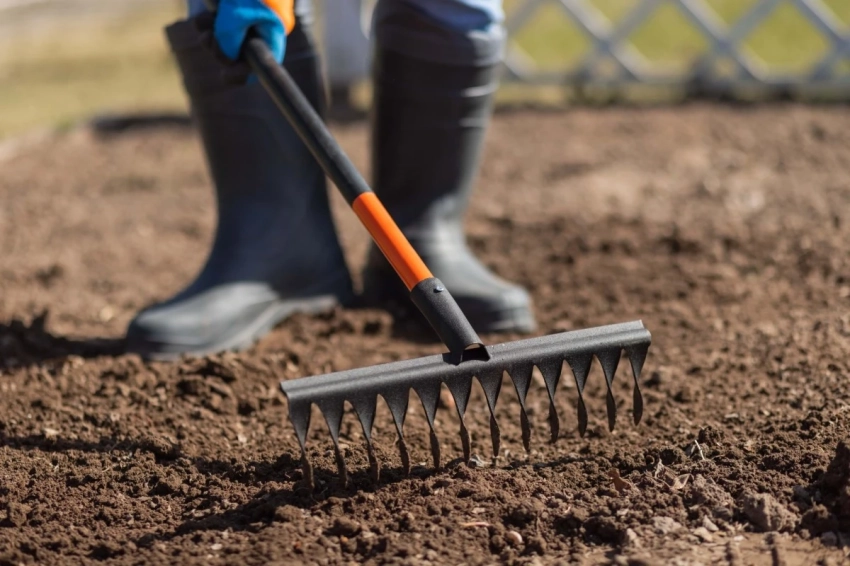 Разрыхлить землю граблями.