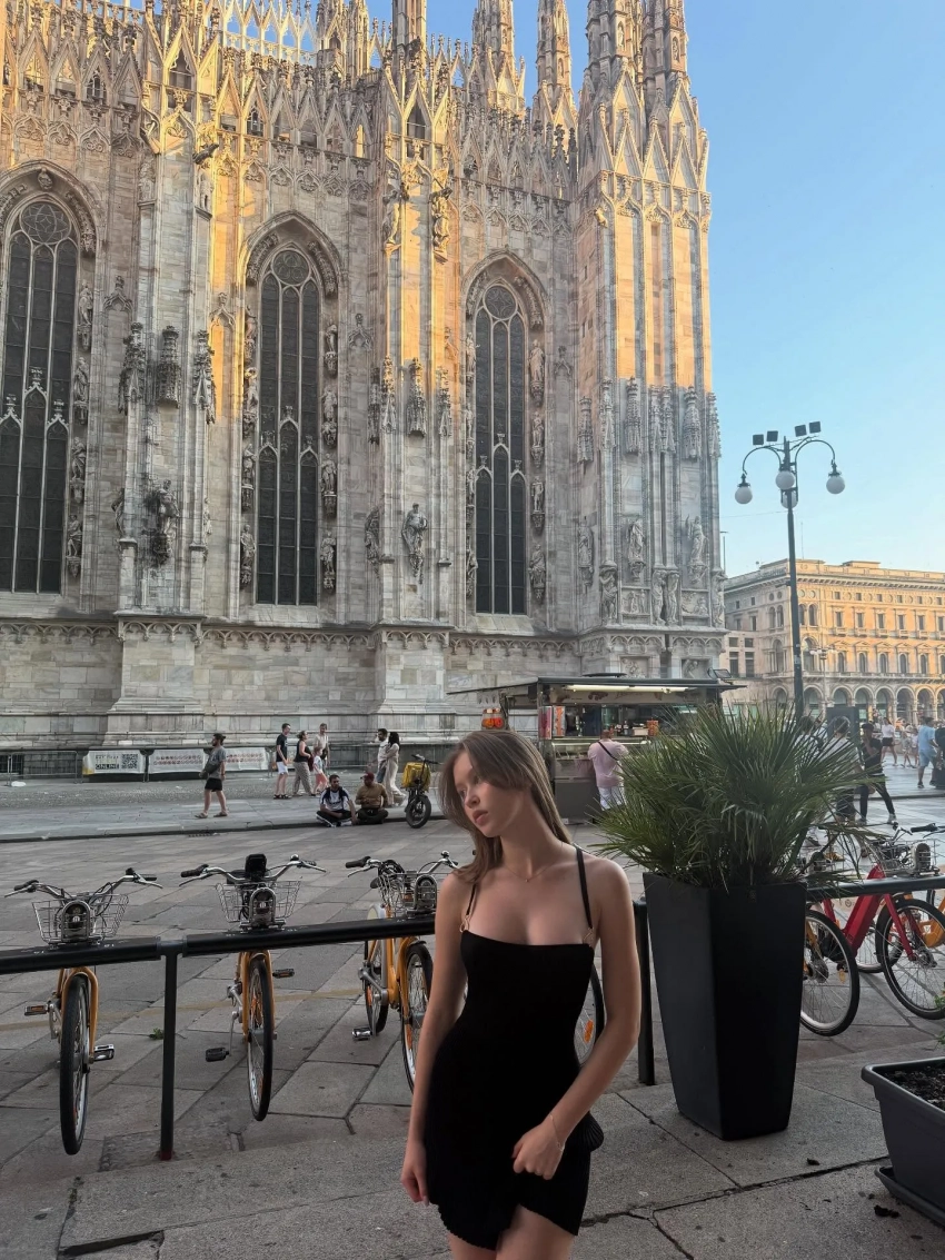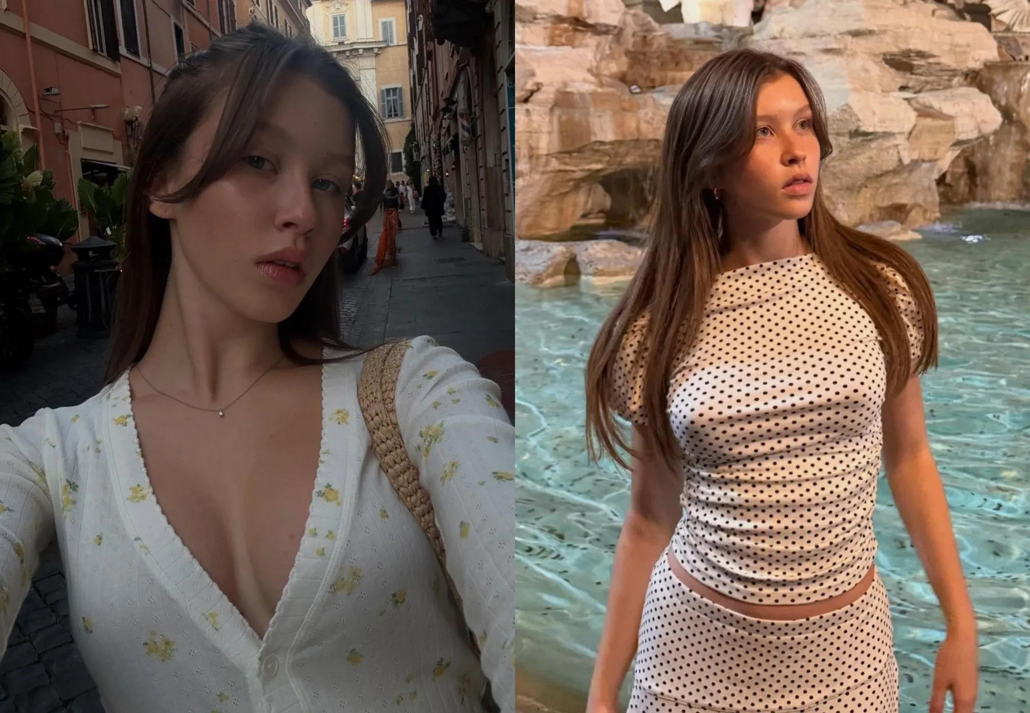 На фото Анна позирует как одна, так и с 40-летней мамой: на фоне достопримечательностей Ватикана, Милана, Флоренции и просто колоритных улочек. Для прогулок она выбрала белый кардиган с глубоким декольте, чёрное мини-платье на бретелях (и без них), а также комплект в трендовый горох.