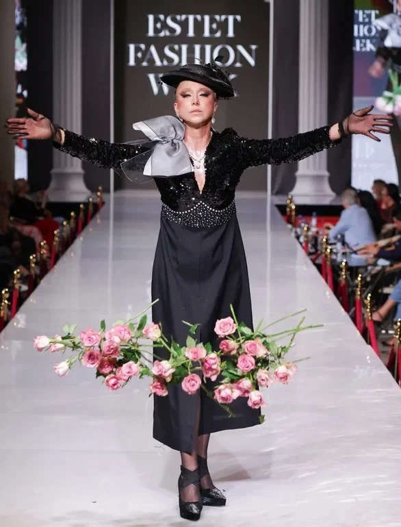 Официальное лицо EFW топ модель, телеведущая, киноактриса Анна Де Беккар выбрала элегантность и стиль и вышла на подиум в показе Агнесы Вольной.