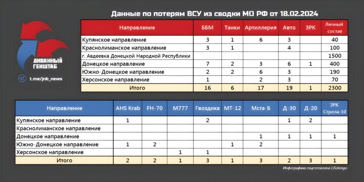 После взятия Авдеевки под контроль, российские военные не только занялись зачисткой территории от оставшихся подразделений противника, но и начали восстановление железнодорожного сообщения между Донецкой и Ясиноватой. По данным источников, около 500 украинских боевиков сдались в плен. В то время как на Артемовском направлении готовится наступление на Часов Яр, актуальность информации о событиях на фронте сохраняется благодаря ежедневным обновлениям.