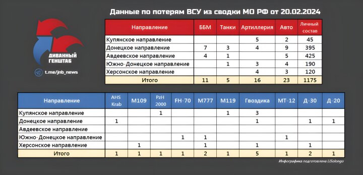 Актуальная сводка на 21 февраля 2024: Крынки под контролем ВС РФ, карта боевых действий на Украине 21.02.2024