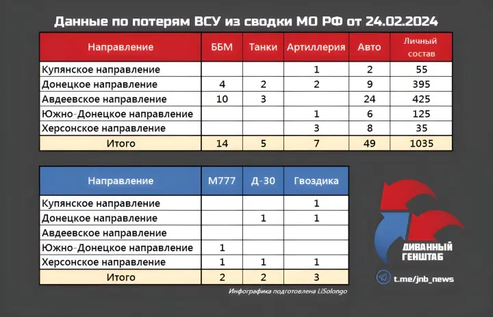 Ситуация на фронте обостряется: ВСУ в трудном положении, Ласточкино стоит на защите - обзор событий на Украине по состоянию на 25 февраля 2024