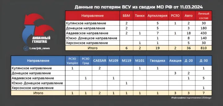 Потери ВСУ 12 марта 2024 по данным Минобороны РФ
