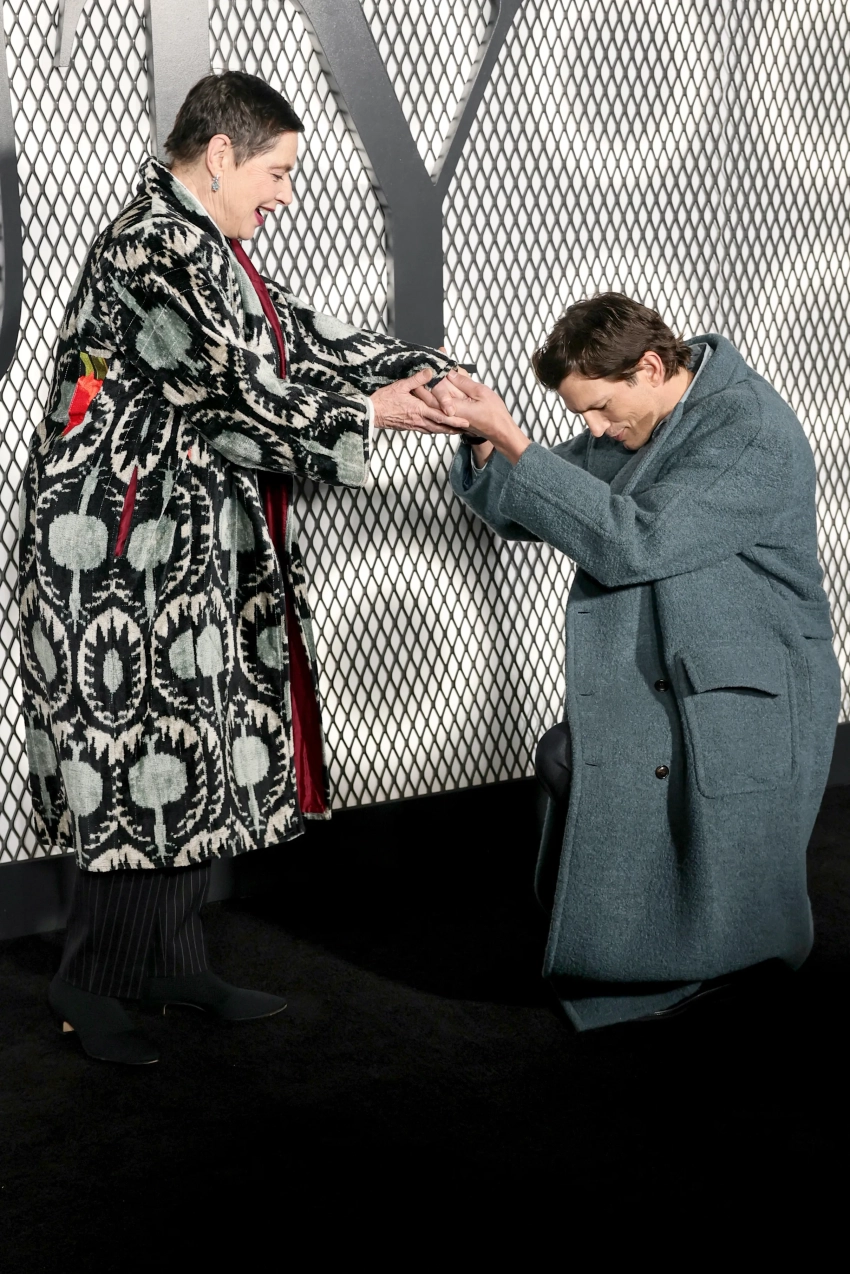 29-летняя супермодель Белла Хадид позировала в красном платье Schiaparelli с прозрачными вставками, а 47-летний Эштон Кутчер, который на днях был на "Золотом глобусе" с женой Милой Кунис, надел длинное серое пальто. Кинозвезда Изабелла Росселлини вышла на дорожку в бархатном пальто-халате и жакете с галстуком, а Амелия Грей пришла в синей шубе и прозрачном платье.